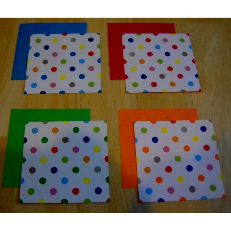 There are 100 sheets, four variations of dot chiyogami paper, colorful matching plain color to front side, 75mm (3 inches)