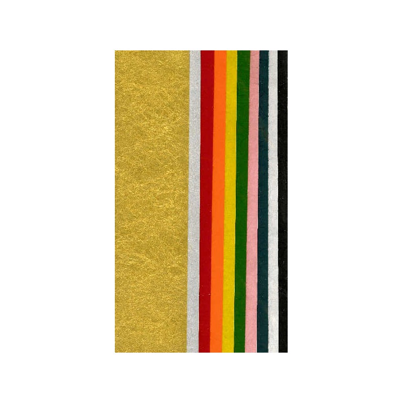 There are 10 vibrant colors of momigami washi paper, same color both sides, 220mm x 300mm